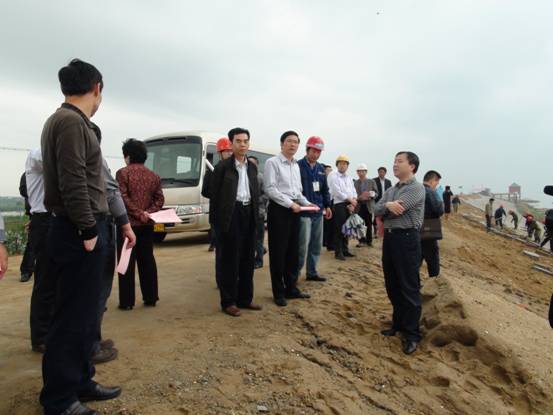 4月24日上午,省人大常委會委員、農委主任委員陳毓平,省水利廳副廳長曾曉旦帶領農委及水利廳有關人員來到康山大堤除險加固工程實地察看并調研工程建設情況。上饒市人大農工委主任郝正良,市水利局副局長彭任校,余干縣相關領導和我公司副總經理胡鴻煌等陪同。
