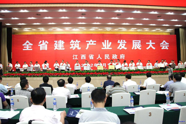 6月15日上午,江西省政府在南昌召開全省建筑產(chǎn)業(yè)發(fā)展大會,省政府朱虹副省長、蔡玉峰副秘書長,住房城鄉(xiāng)建設(shè)部總工程師陳重,建設(shè)廳領(lǐng)導(dǎo)張勇等出席了會議。省直有關(guān)單位負(fù)責(zé)人,各設(shè)區(qū)市、縣(市、區(qū))政府分管領(lǐng)導(dǎo)和建設(shè)局(建委)主要負(fù)責(zé)人,全省特、一級建筑企業(yè)和受表彰建筑企業(yè),部分勘察設(shè)計單位、監(jiān)理單位負(fù)責(zé)人近600人參加會議。