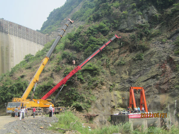 我司施工人員進行導(dǎo)流隧洞封堵閘門下閘作業(yè)