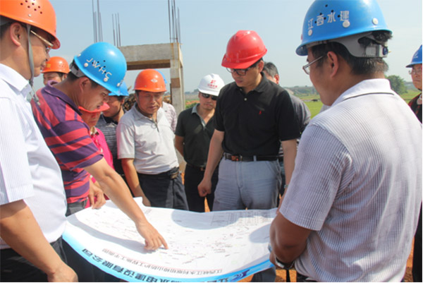 孫廳長對(duì)工程后續(xù)施工安排及后續(xù)工程的施工難點(diǎn)和重點(diǎn)進(jìn)行了詳細(xì)的了解,并咨詢了工程施工進(jìn)度是否會(huì)影響峽江樞紐下閘蓄水。項(xiàng)目經(jīng)理彭燦華、彭紅軍都明確表態(tài),我們一定會(huì)科學(xué)合理地安排施工計(jì)劃,加快工程施工進(jìn)度、保證工程質(zhì)量,確保工程進(jìn)度和高程達(dá)到“七一”下閘蓄水的目標(biāo)。