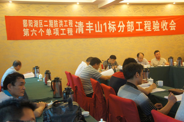 2013年8月22日,鄱陽湖區二期防洪工程第五個單項南昌縣堤防修建項目部在南昌縣主持召開了清豐山1標分部工程驗收會議,并順利通過了7個分部工程驗收。本次驗收的7個分部工程質量全部合格。 公司總經濟師孫八根出席了本次分部工程驗收會。