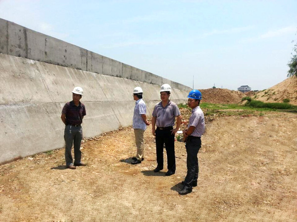 隨后,王總一行又馬不停蹄地趕往江西省五河治理防洪工程鉛山縣城西堤畜牧場至劉家洲段項目施工現(xiàn)場進行檢查指導工作。董事長兼總經(jīng)理王元旦實地察看了施工現(xiàn)場,仔細了解了工程情況,對項目施工質量作出了肯定的評價。他要求項目部要強化安全意識,加快進度,確保工程質量,按計劃完成并驗收。王總還親切慰問了一線施工人員,提醒項目經(jīng)理部要做好職工的降溫防暑工作。