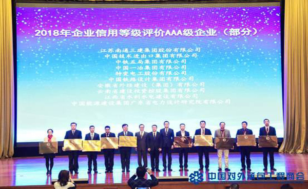 集團(tuán)資訊12月5日,中國(guó)對(duì)外承包工程商會(huì)第七屆理事會(huì)第四次全體會(huì)議在山東濟(jì)南隆重召開,來自全國(guó)各地的140多家理事單位的300多名代表參加會(huì)議。公司董事、海外公司執(zhí)行董事張周平出席會(huì)議。會(huì)議頒發(fā)了“2018年企業(yè)信用等級(jí)評(píng)價(jià)AAA級(jí)企業(yè)(部分)”牌匾,公司憑借良好的業(yè)績(jī)和口碑,再次榮獲中國(guó)對(duì)外承包工程企業(yè)信用評(píng)價(jià)AAA級(jí)信用企業(yè),并在現(xiàn)場(chǎng)受邀上臺(tái)接受授牌。