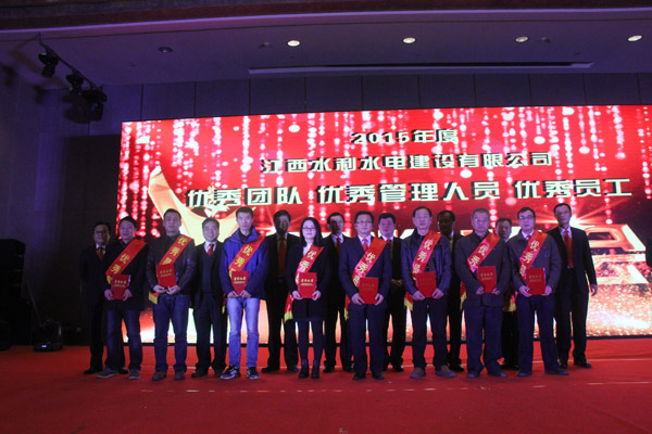 隨后,公司董事長王元旦、總經理徐洪良和相關領導向海外公司等10個優秀團隊、郭洪有等22位優秀管理者和周家煌等30位優秀員工進行頒獎,感謝他們在過去的2015年為江西水建發展所作出的貢獻。