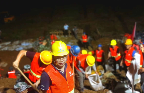 彭燦華是第一時(shí)間帶領(lǐng)抗洪搶險(xiǎn)隊(duì)員趕赴現(xiàn)場(chǎng)與洪水戰(zhàn)斗的先遣軍。他連夜指導(dǎo)施工人員開展搶險(xiǎn)工作,天黑路滑,他幾次摔倒在泥濘中,眼鏡上沾滿了泥點(diǎn),渾身早已被泥水覆蓋,即便這樣,他還是一邊了解汛情水情,一邊指揮搶險(xiǎn),一邊將一線汛情匯報(bào)給公司,一邊頂著傾盆大雨加入到搶險(xiǎn)的隊(duì)伍中,裝袋抬土,和搶險(xiǎn)施的隊(duì)伍們奮戰(zhàn)在一起。