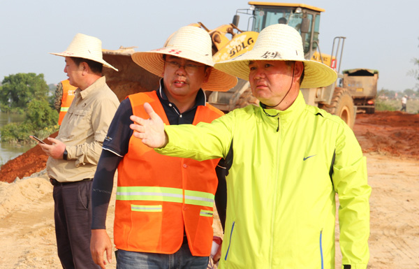 7月13日上午8點(diǎn)30分,董事長(zhǎng)王元旦接到南昌市政府指令,10點(diǎn)在新建縣大塘坪鄉(xiāng)政府集合,參加南昌市政府組織召開的搶險(xiǎn)動(dòng)員會(huì),并得到通知承擔(dān)三角聯(lián)圩堤紅旗村河頭張段決口封堵施工。接到命令,責(zé)無(wú)旁貸,迅速行動(dòng)。公司再抽調(diào)精干力量,專業(yè)人員等九十余人,由公司黨委書記、董事長(zhǎng)王元旦親自帶隊(duì),迅速落實(shí)機(jī)械設(shè)備組建專業(yè)抗洪搶險(xiǎn)突擊隊(duì)趕赴一線。