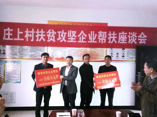 為認真貫徹落實黨的十九大關于堅決打贏脫貧攻堅戰的新部署新要求,踐行企業的社會責任。11月17日,公司副總經理王俊華同志率撫州廖坊灌區二期工程施工總部負責人胡福民、項目財務部負責人肖志兵代表江西省水利水電建設有限公司前往南城縣洪門鎮參加莊上村扶貧攻堅企業幫扶座談會,并將公司捐助的10萬元扶貧資金送至莊上村村委會。